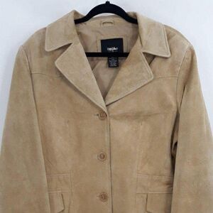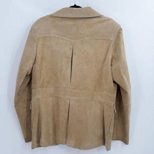 Vtg 90s Mossimo Blazer Shacket Leather Suede Western Boyfriend 3 Button Tan Sz L