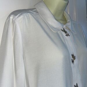 Vtg 90s Susan Bristol petites white blouse with pine needle embroidery