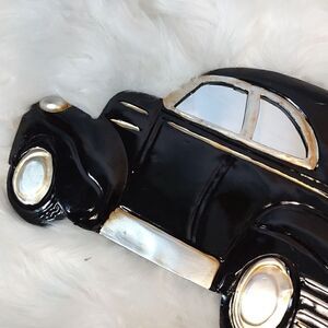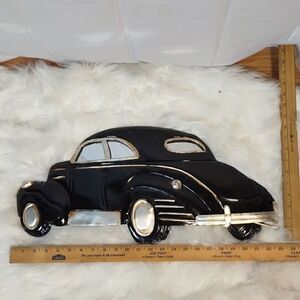 This black metal vintage 50s car metal sign measures approximately: 11" x 23". It has mirror windshields. All offers are welcome.
