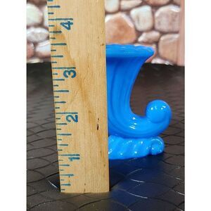 Enhance your collection with this stunning vintage blue slag glass toothpick holder from Akro Agate, distributed by NYC Vogue Merc Co. Shaped like a cornucopia, this piece showcases beautiful swirls of blue and white, characteristic of slag glass. Perfect for collectors or as a charming addition to your home decor.