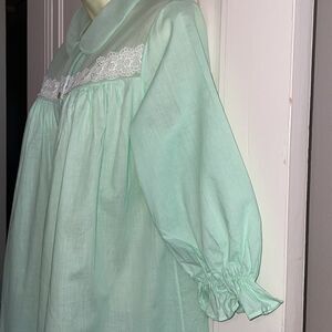 Vintage Charmode (Sears, Roebuck & Co.) mint green cotton robe with nylon & lace neckline & 3/4 sleeves