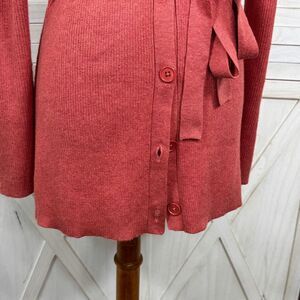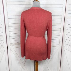 Vtg Croft & Barrow V Neck Button Up Belted Tunic Cardigan Sweater Spice