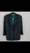 Wool blue, green and sparkle plaid notched lapel 2 button single breasted patch pockets thigh length boxy boyfriend blazer by Ellen Tracy vintage 90's.