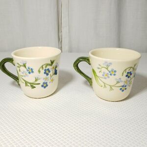 Vtg Franciscan Ware Forget Me Not Floral Coffee Cup Mug White Blue Green Qty 2