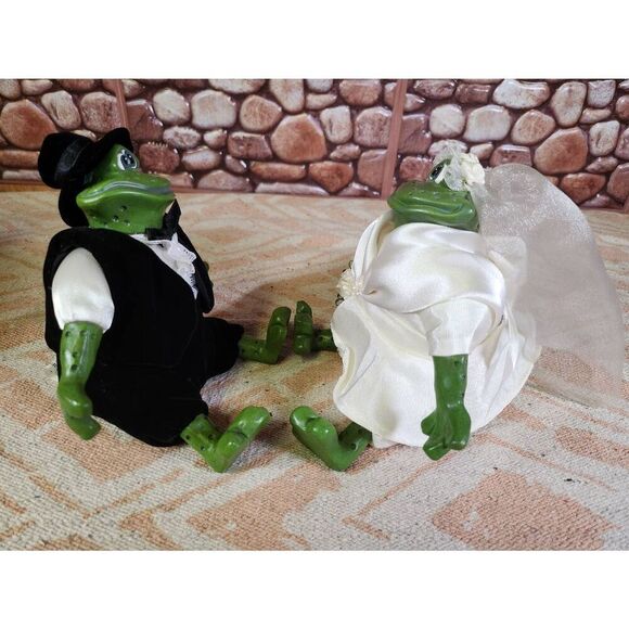 Step into the enchanting world of Mr. & Mrs. Pondhopper, a delightful vintage frog couple that’s ready to leap into your collection. This charming bride and groom duo, adorned in their wedding best, are not just collectibles but a symbol of love and companionship. Crafted with care, they bring a touch of whimsy and nostalgia to any setting. Perfect for frog enthusiasts, collectors of unique wedding memorabilia, or as a quirky gift for a special couple.