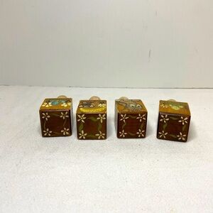 VtgHand Painted Wood Bottle Stoppers Set of 4 Owl Mushroom Mouse Turtle