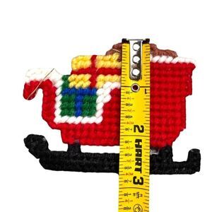Vtg Holiday Set 6 Handmade Christmas Canvas Ornaments Yarn Sleigh Tree Wreath