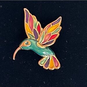 Vtg Hummingbird Brooch Pin 1 3/4” X 1 1/2” Gold-tone Multicolor Enamel