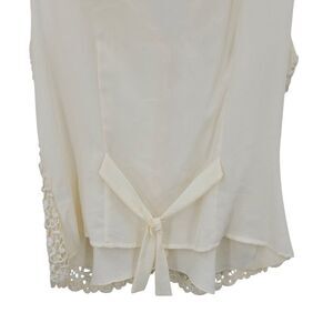 Vtg Ivory Lace Vest Sz M Button Front Sheer Tie Back Soft Girl Granny Cottage
