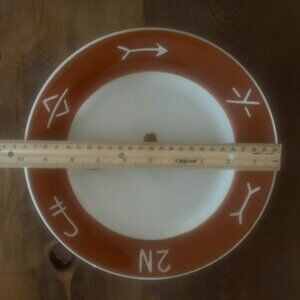 In the heart of the American West, this Jackson China plate echoes tales of ranches and cowboy legends. Its bold Longhorn design and rustic symbols speak of lands where horizons are limitless, and adventures await. This plate serves not just as a vessel for meals but as a reminder of the rugged, untamed spirit of the West.
