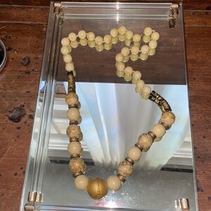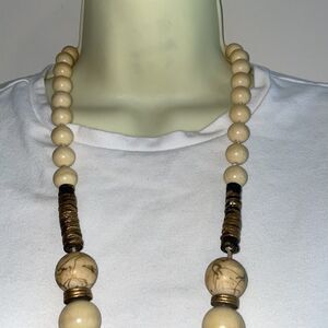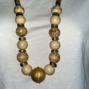 Vintage Les Bernard Inc. cream & gold chunky round wooden bead necklace