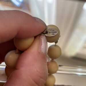 Vtg Les Bernard Inc. cream & gold chunky round wooden bead necklace