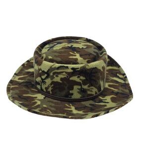 Vtg Mens Hat Cowboy Safari Camo Hunting Adventure Core Cabin Core Green 7 3/8