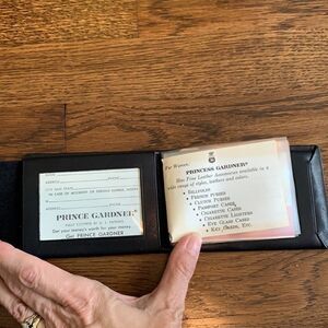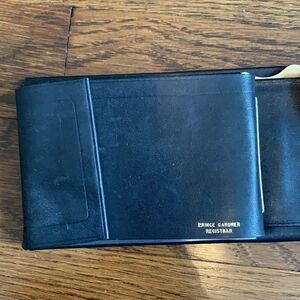 Vintage NWT 70s Prince Gardner black “Registrar” top grain cowhide flip wallet in Original box with price tag