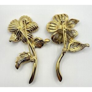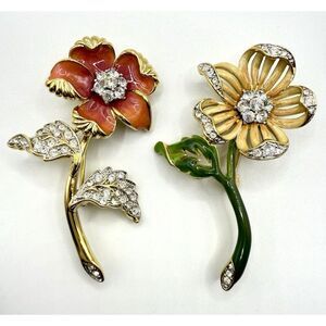 Vtg Nolan Miller Lot Of 2 Flower Brooches Enamel Rhinestones Glamour Collection
