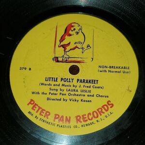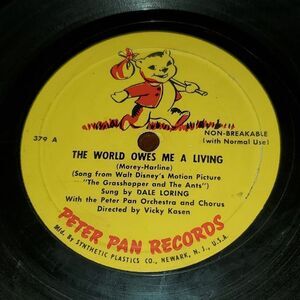 This is a vintage Peter Pan Records The World Owes Me a Living and A Little Polly Parakeet album. It is numbered 379A on one side and 379B on the other side. Record plays on both sides, shows wear, and cover is ripped and torn. See pics.