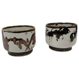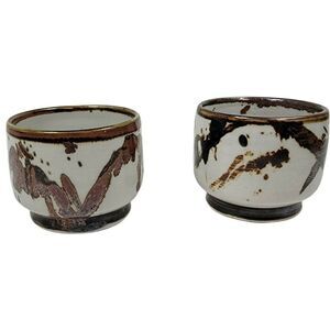 Vtg Set 2 Louis Mideke Studio Pottery Splatter Glaze Oriental Asian Inspired Cup
