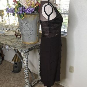 Vtg Sherrie Bloom/Peter Noviello Chetta B Dark Brown Beaded Silk Dress Sz 4 Y2K