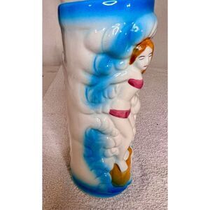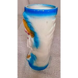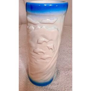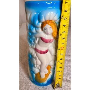 Vtg Surfer Girl Tiki Mug Cocktail Glass Surfboard Hawaiian Pink Bikini Dolphins