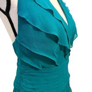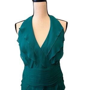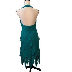 Vtg Tadashi Shoji Green Silk Tiered Handkerchief Hem Dress Sz 10 Y2K, Cocktail