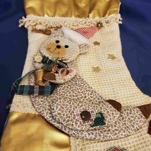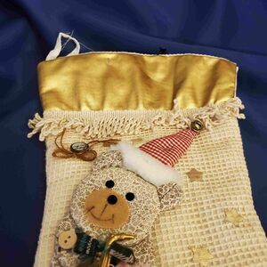 Vintage Sweet baby Teddy Moon Quilted Patched Christmas Stocking. Pre-owned in overall good condition. Imperfection has been pictured. Please refer to pictures for best description, condition verification and measurements.