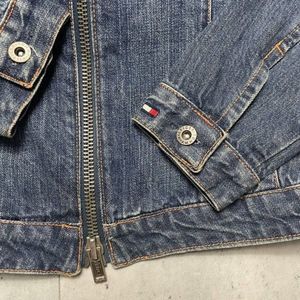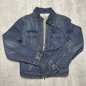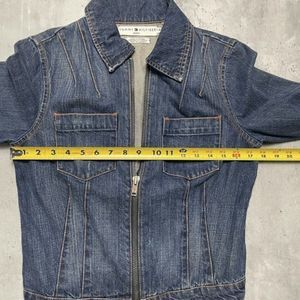 Vtg Tommy Hilfiger American Womens Sz S/M USA Flag Jean Denim Jacket Trucker