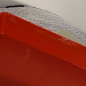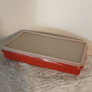 This vintage paprika colored Tupperware rectangle meat (bacon, lunch meat...) storage container measures approximately: 11-1/2" x 7" x 2". In great condition some scrapes on the inside (see photo #5). All offers are welcome.
