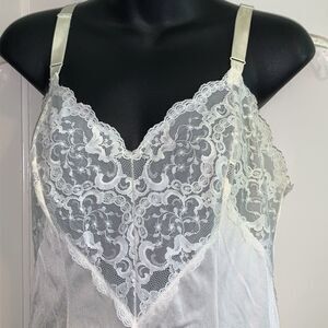 Vintage Vanity Fair creamy white lace bodice front Antron nylon full slip