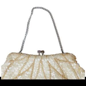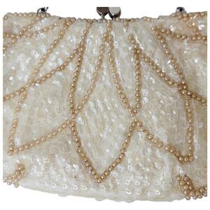 Vtg White Gold Beaded La Regale Elegant Evening Bridal Costume Purse Clutch Bag.