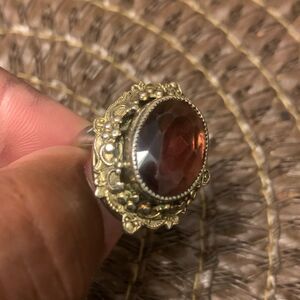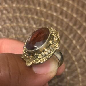 This exquisite vintage-inspired ring features a stunning purple amethyst set in an ornate gold band. Perfect for adding a touch of elegance to any outfit.
