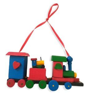Vtg Wood Train Ornament Locomotive Christmas Primary Colors Painted Choo Choo.