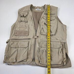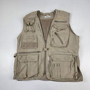 This Vtg Y2K Banana Republic Safari Photography Shooting Hunting Fishing Vest in size Large is a stylish and versatile addition to any man's wardrobe. Made of cotton in a beige color, this vest features a regular fit and is perfect for travel or casual occasions. With a vintage design and a theme inspired by fishing, this vest is ideal for those who enjoy the outdoors and are looking for a unique and functional piece to wear in all seasons