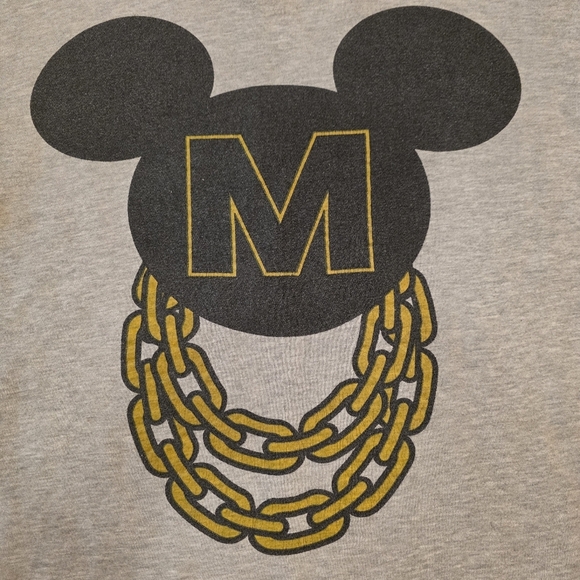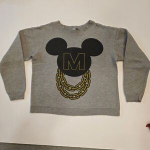 Keywords/Tags to Use: Disney, Mickey Mouse, Crewneck, Sweatshirt, Pullover, Small, Streetwear, Hip Hop, Gold Chain, Graphic, Gray, Y2K.