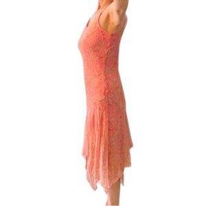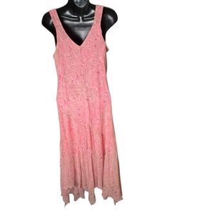 Vtg Y2K Jonathan Martin Silk Pink Handkerchief Hem Drop Waist Midi Dress 12 L