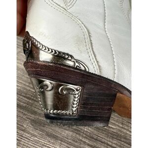 Vtg Zodiac USA White Leather Cowboy Boots 7.5M Metal Accents Western 609037 in good vintage condition.