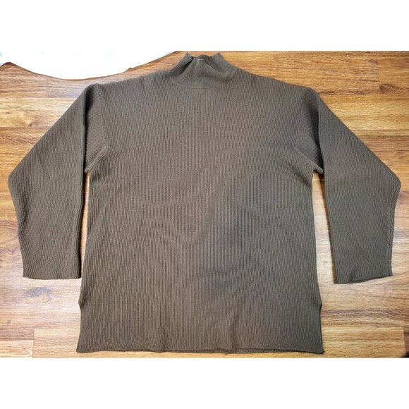 Vtge J Crew Brown Mock Neck Ribbed‎ Wool Brown Sweater Size Large