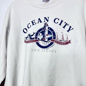 Vtge Jerzees Ocean City New Jersey White Sweatshirt L Outdoors Preppy Academia