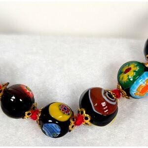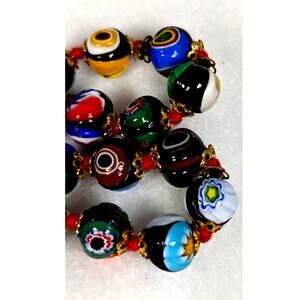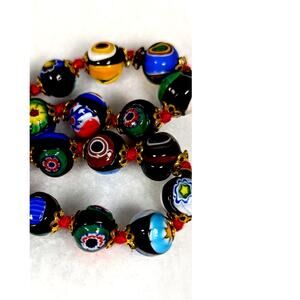 Vtge Venetian Millefiori glass beads necklace 32" Murano original stringing bought in Venice in the 60's