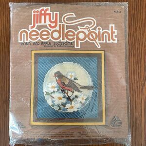 Vtg new in packaging 1981 Jiffy Needlepoint “Robin and Apple Blossoms” kit
