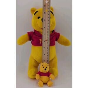 The product is an 11" Winnie the Pooh plush stuffed bear along with a 3" mini Pooh. This collectible item is from the Disney franchise and manufactured in China. The brand behind the product is Fisher Price. This adorable set is perfect for fans of the Winnie the Pooh character and would make a great addition to any Disneyana collection.