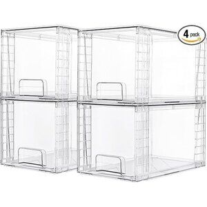 Vtopmart 4 Pack Large Stackable Storage Drawers,Easily Assemble Acrylic