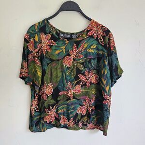Vts. Block Island Petites Women's PL Top s Green Leaf & Floral Blouse 100% Rayon