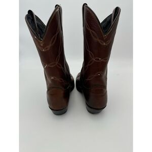 Elevate your Western style with these vintage Vulcan cowboy boots. Crafted from rich, supple leather, these boots feature intricate embroidered accents that add a touch of rustic charm. The pointed toe and classic silhouette offer a timeless look, while the comfortable leather lining ensures all-day wear. Perfect for everyday wear or special occasions, these boots are a must-have for any cowboy boot enthusiast.