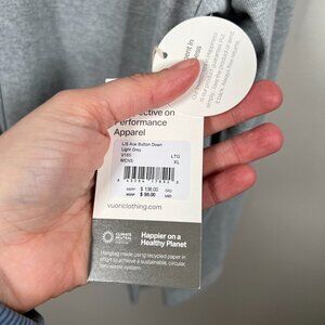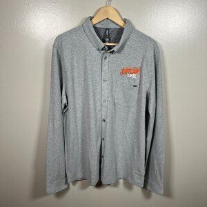 Vuori Ace Button Down Mens Size XL Gray Long Sleeve Outlaw Snax Logo Work Office
