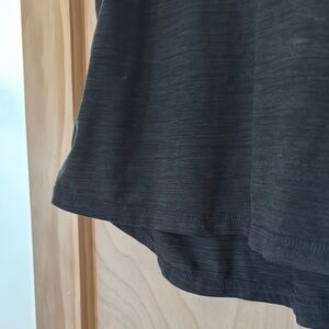 This black tank top from Vuori features a sleek scoop neckline and a sleeveless design, perfect for athletic activities. Made from lightweight, breathable material, it offers a relaxed fit with a stylish curved hem. The racerback style adds a modern touch, making it ideal for both workouts and casual wear.