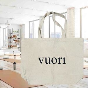 Lightweight and durable, this canvas tote bag is perfect for errands, gym trips, or casual outings. Featuring the signature Vuori logo on natural-colored fabric, it's stylish, versatile, and eco-friendly.