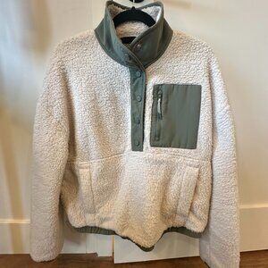 Because cozy comes first. A close cousin to our sherpa jacket, this comfy popover is made with the same high-pile plushness and relaxed fit.