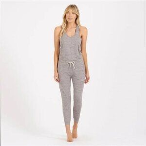 Stylish heather gray jumpsuit. Features sleeveless cut and adjustable drawstring waist. Ideal for relaxed outings.