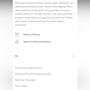 Vuori inversion rib leggings size xs. Worn once.