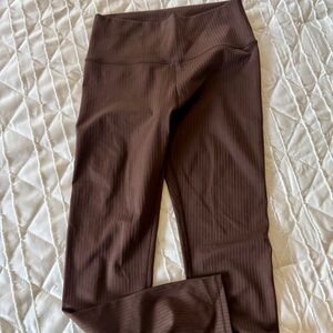 Experience comfort and style with these brown ribbed leggings. Perfect for any casual outing.